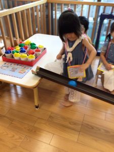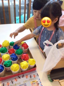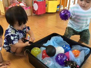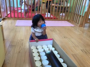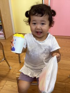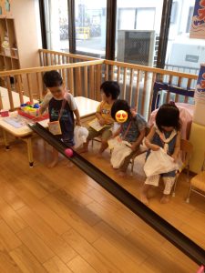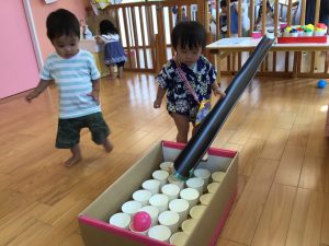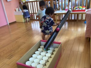 ボールを転がしてカップにインすると大喜びの子どもたちでした✨