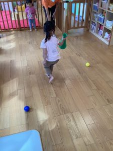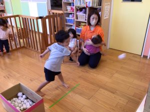 転がって行くボールを追いかけて捕まえるのは少し難しいけどみんな大好き![]()