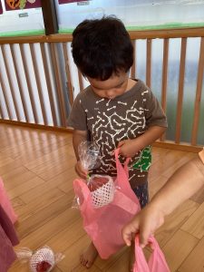 ゲットした果物は袋に入れて大事そうに持っていましたよ![]()
