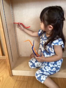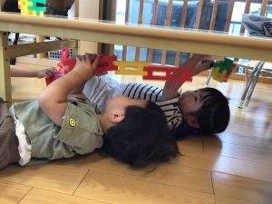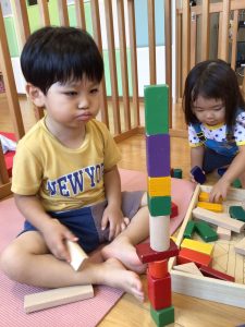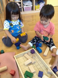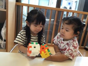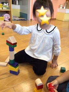 積み木で何を作ろうかな〜![]()
