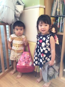 赤ちゃんをおんぶしてるの〜![]()