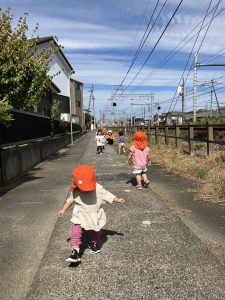線路沿いで、よーいどん![]()