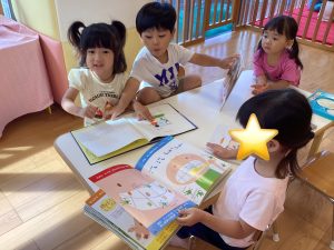 みんなで絵本を見るのも楽しいね![]()