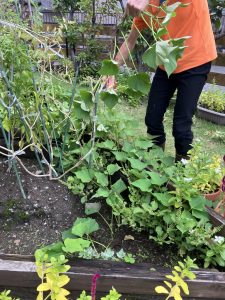 野菜によって葉っぱの形や色が違うことに気づいて、まるで野菜の観察をしているようにじっくりと見ていました