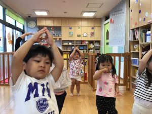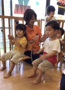 また、“アイアイ”の歌で“トンパトンパ”と2拍子のテンポで遊びました![]()