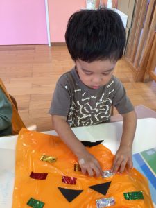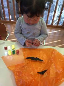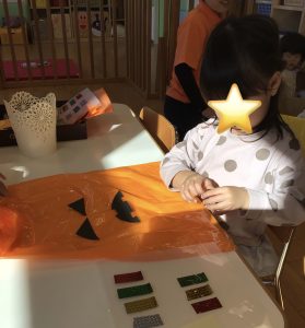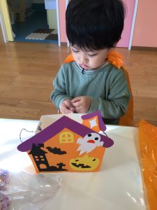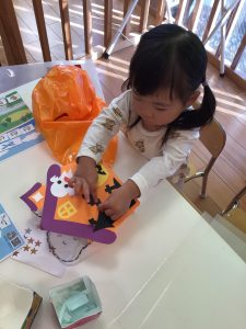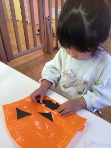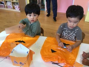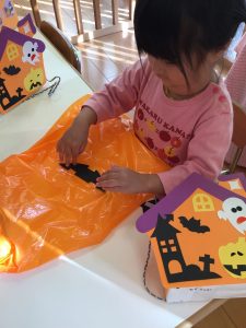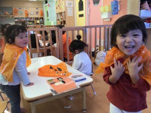そこで、今週はハロウィンバックやマント作りをしたり、たんぽぽさんにご挨拶に行ったりしました![]()