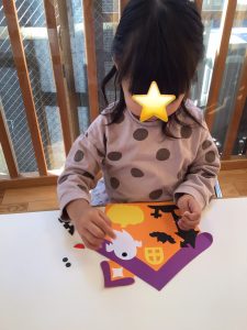 もらったお菓子を入れるバックに貼る飾りだよ![]()