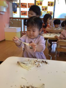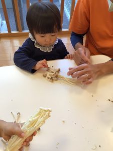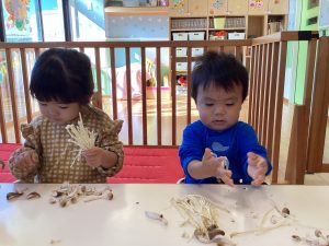 今月の【食育】では、えのき茸、しめじ、しいたけにも触れました![]()