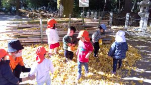 葉っぱを拾ったり、落ち葉の山で楽しんだり![]()