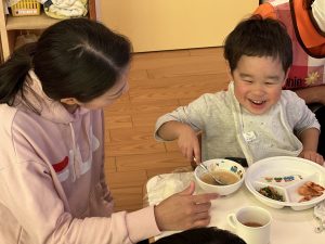 今日は保護者の方とみんなで給食タイム![]()