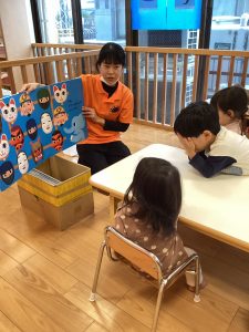 とお面の下の動物クイズを楽しみながら、お話を見ていましたよ😊