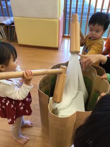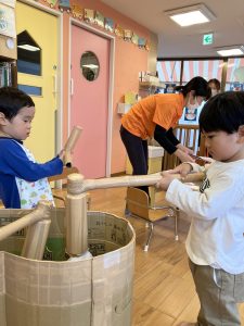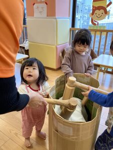 こちらは餅つきごっこ![]()