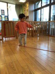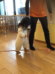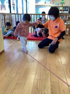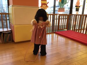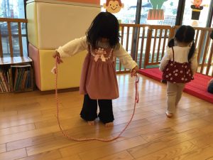 保育士の真似をしながら、縄跳びもできるよ![]()