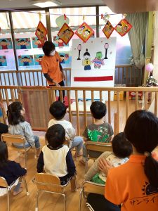 パネルシアターでは、色々な動物がお雛様に変身😯