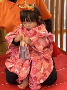 楽しいパネルシアターの後は、子どもたちが等身大のお雛様と御代理様に変身✨🎎✨