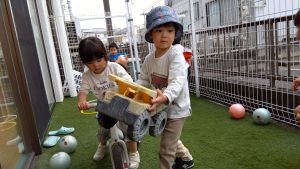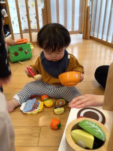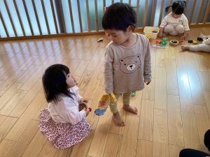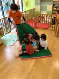 新入園児さんは、少しずつ自分の好きなおもちゃや遊びを見つけて笑顔も見られるようになってきていますね✨