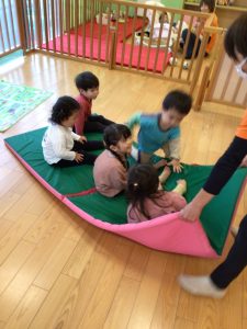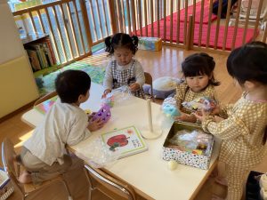 こちらは、1歳児クラスのいちごぐみさん🍓