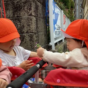 道端のお花を“はい、どーぞ