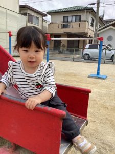 戸外遊びが大好きで、公園に行くと気持ちよさそうに遊んでいます![]()