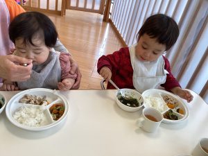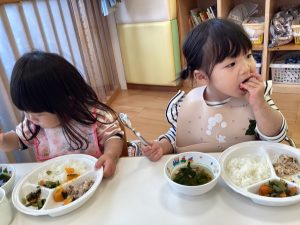 いっぱい遊んで、給食もしっかり食べていますよ![]()