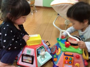 少しずつ、自分の好きな遊びを見つけて、1人遊びを満喫中のいちご組さん![]()