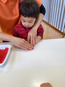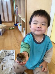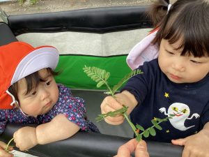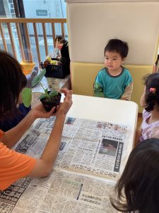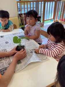 と伝えると覚えて、お家の方にも「オクラとかぼちゃ植えたよ」と報告していたようですよ![]()