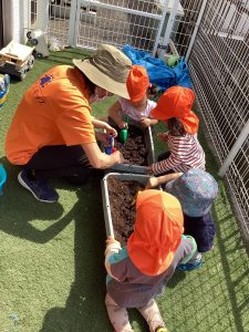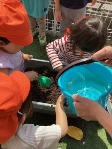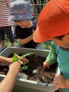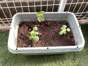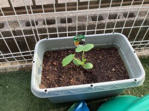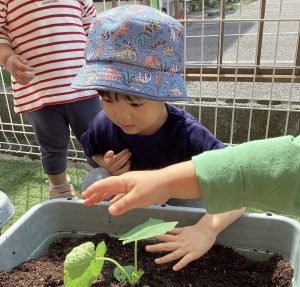 さて、りんご組さんは園庭のプランターにかぼちゃとオクラの苗を植えました🌱