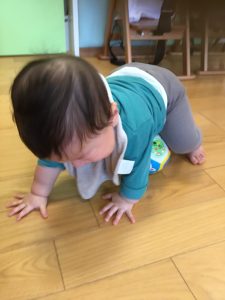 お姉さん、お兄さんの様子が気になる0歳児さん![]()