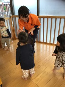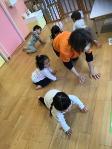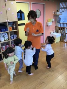 特に、からだを動かすことが大好きな2歳児さんは、体操の時間はダイナミックな動きで楽しく取り組んでいますよ![]()