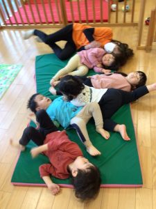 在園児さんはもちろん、新入園児さんも少しずつ興味を示して、英語、リトミック、体操、フラッシュカードなと、色々なカリキュラムを楽しんでいます![]()