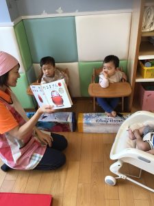こんにちは サンライズキッズ保育園今伊勢園です 今週の読み合いプログラムは「だるまさん...
