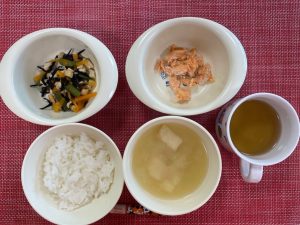 サンライズキッズ保育園 ◎給食の様子 今日は、厚揚げの煮物にさやいんげんを使用しました。中から小さな...