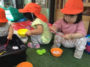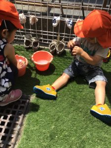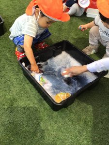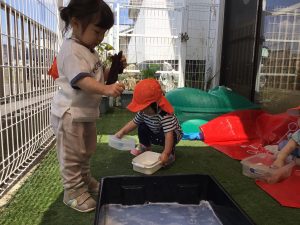 それでも、やっぱり外で遊びたいよねということで、保育士が色々と準備しましたよ