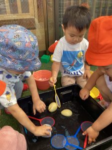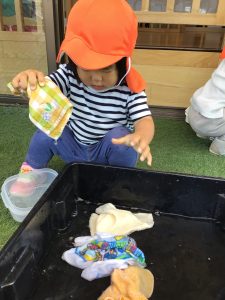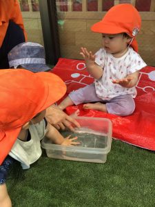 ということで、本格的な水遊び前に、少し水にふれて遊びました