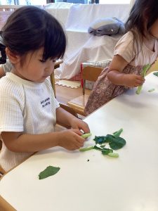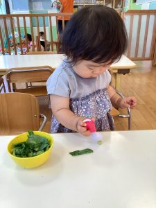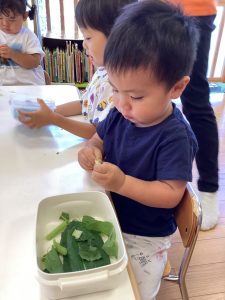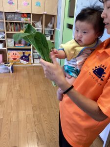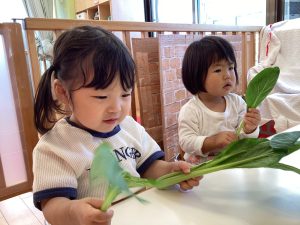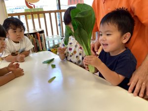 毎月取り組んでいる食育ですが、今月は小松菜を用意しました