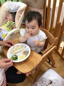 サンライズキッズ保育園 ◎給食の様子 今日の給食は、鮭の塩焼きでした。ふっくら焼いた鮭はご飯に合い、...