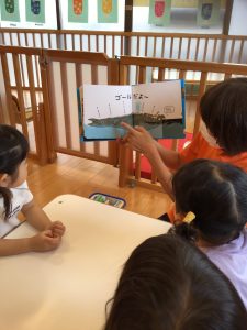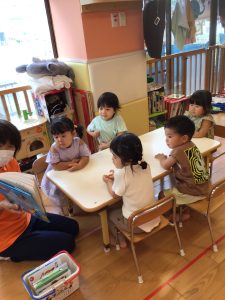 想像もつかないお話の展開に釘付けの子どもたち![]()