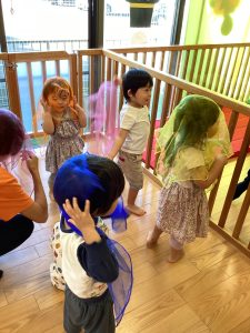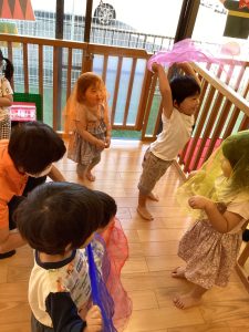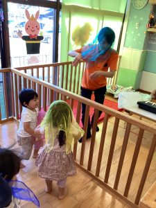 その後は、ろくろ首になったり、傘おばけになったり、ガイコツのダンスも上手にしていた子どもたちでした🎃