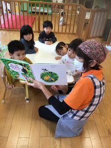 こんにちは サンライズキッズ保育園今伊勢園です 今週の読み合いプログラムは2歳児さんの...