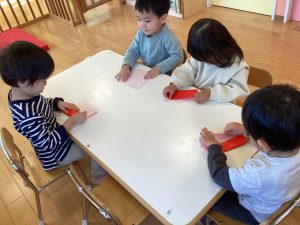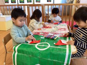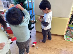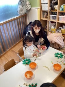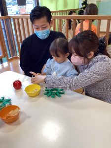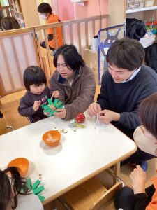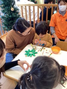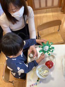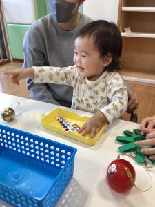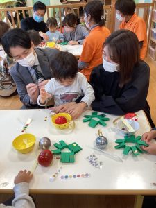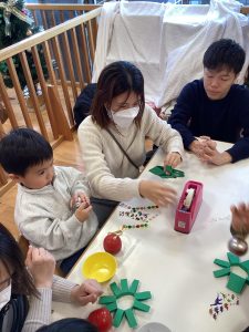 クリスマスオーナメント作りもお家の方と一緒でニコニコ笑顔が微笑ましかったですね![]()