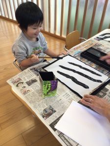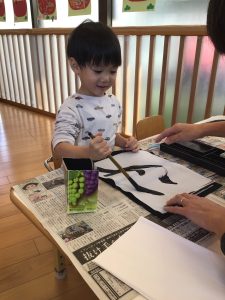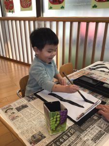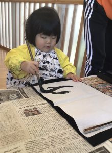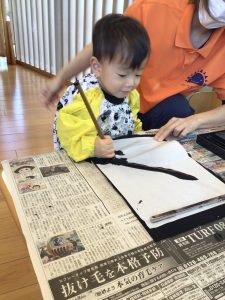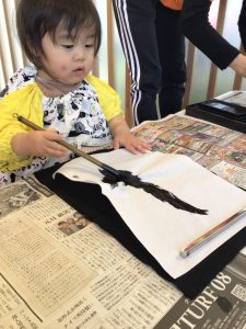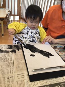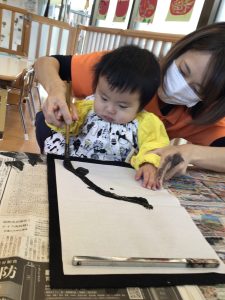 0歳児さんも自分で筆を握って書いていましたよ![]()