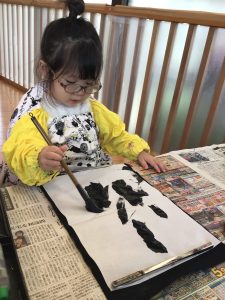 1歳児さんもしっかり筆を持って、様になっていますね![]()