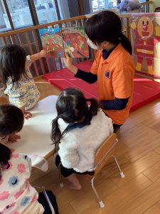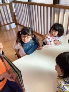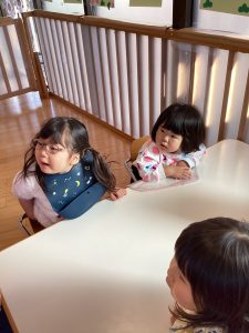 イラストを見て「たぬき、きつね、ねこ」と自然にしりとりとなり、言葉遊びを楽しんでいました![]()