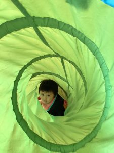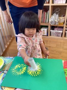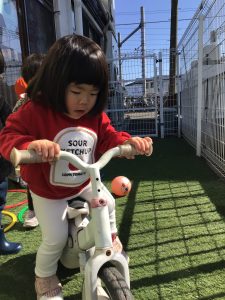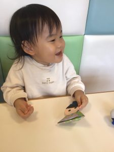 色々なことに興味津々で、隣のお兄さんお姉さんの様子を見て