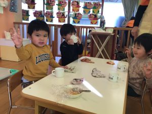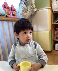 おやつ、給食後の口拭きも片付けできるよ![]()