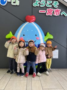 電車に乗って一宮駅まで行き、一宮のマスコットいちみんとハイポーズ![]()