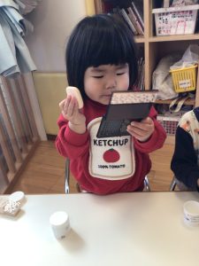 身の回りのことを自分でやろうとする姿が見られますよ![]()
