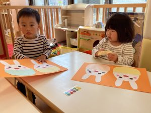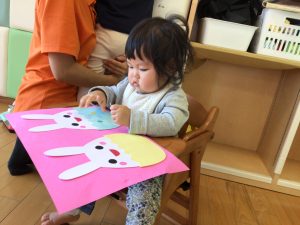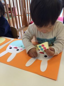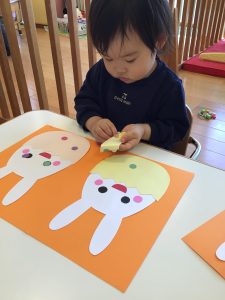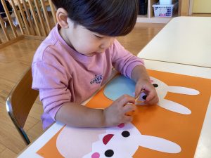 好きな色のシールを貼って可愛いうさぎさんのできあがり![]()
