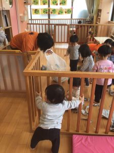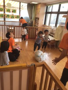 大きいお友だちがワイワイ楽しんでいる姿を興味深そうに見ていましたよ