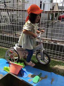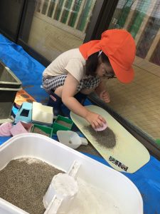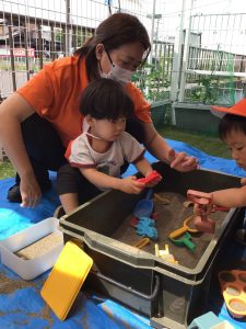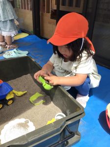 戸外では砂遊びを楽しんでいた子どもたち![]()